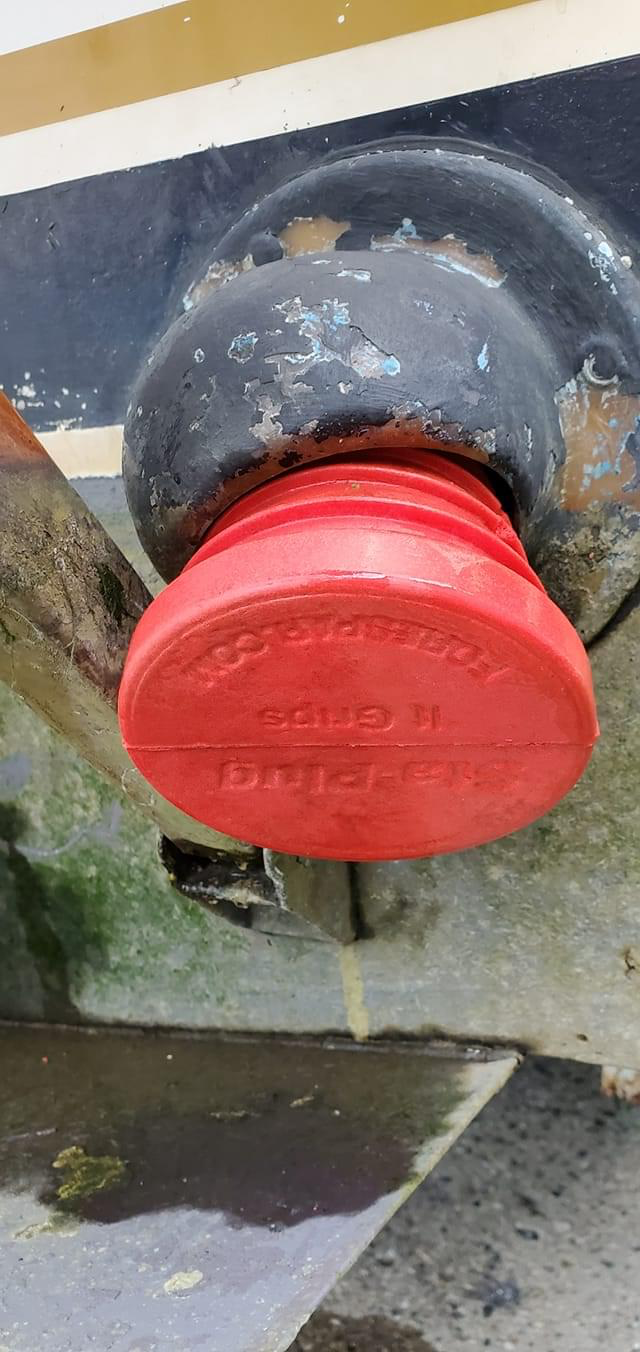 It was a very creepy feeling going down below with ankle-deep water in the cabin. We both had life vests on. As a good Samaritan boater stood by, certain to rescue us from our listing, sinking boat, I held up my Sta-Plug and asked them to watch me as I go into the water. I plugged my exhaust and boarded My Boat and gave them the thumbs up. We're no longer taking on water. I told them the Tow Boat is 25 minutes out and Coast Guard is on their way. Then they asked me where my marina is, and I pointed 2 Miles ashore directly ahead. Certain that I wasn't going to sink, they tied lines and towed me to my marina. I took over bailing while under tow and righted the listing. When we reached my marina, they severed the lines and I made the Marina Company Docks under my own power and retrieved my trailer from storage.